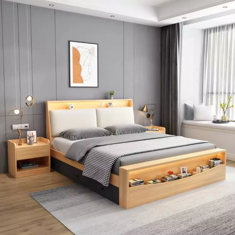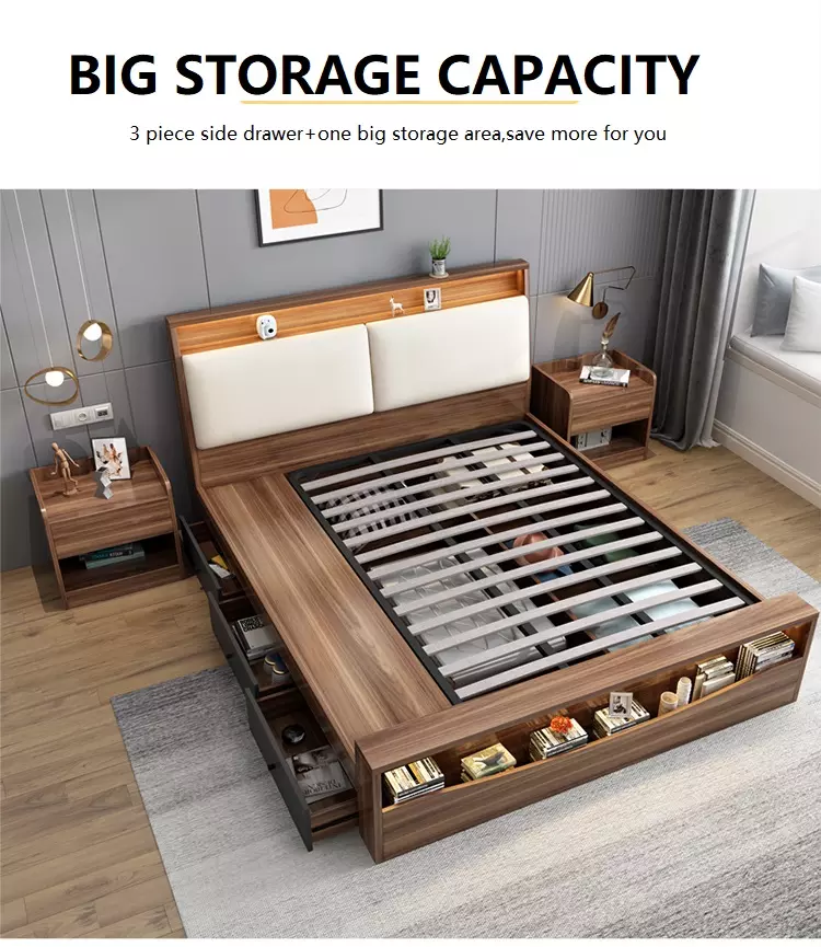 Cama King Queen Size de MDF con almacenamiento para muebles de hogar