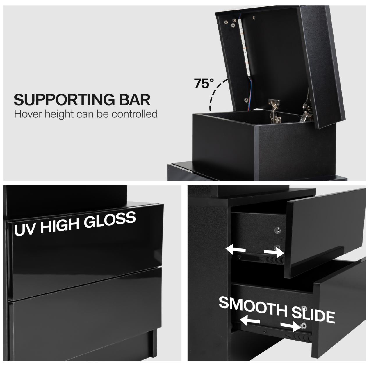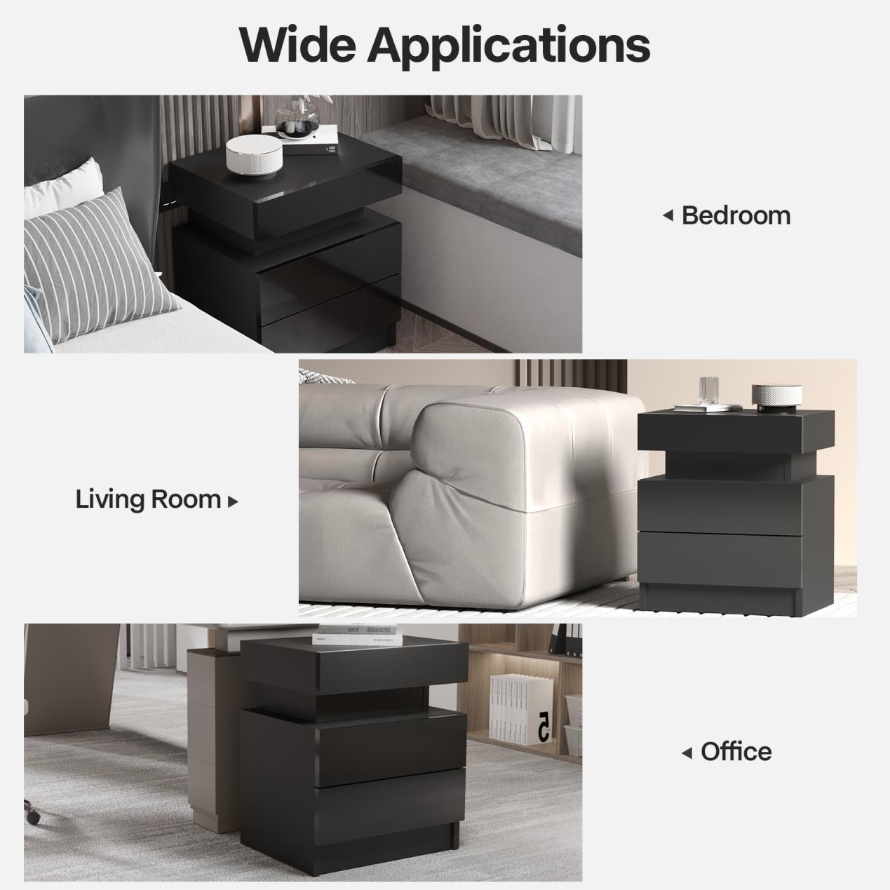 • 【USO MULTIFUNCIONAL】 - La mesita de noche con luces LED no solo es adecuada para usar como mesita de noche y mesita de noche en el dormitorio, sino también como mesa auxiliar de sofá en la sala de estar.Perfecto para espacios grandes y pequeños, amplias aplicaciones pueden satisfacer sus diferentes necesidades.