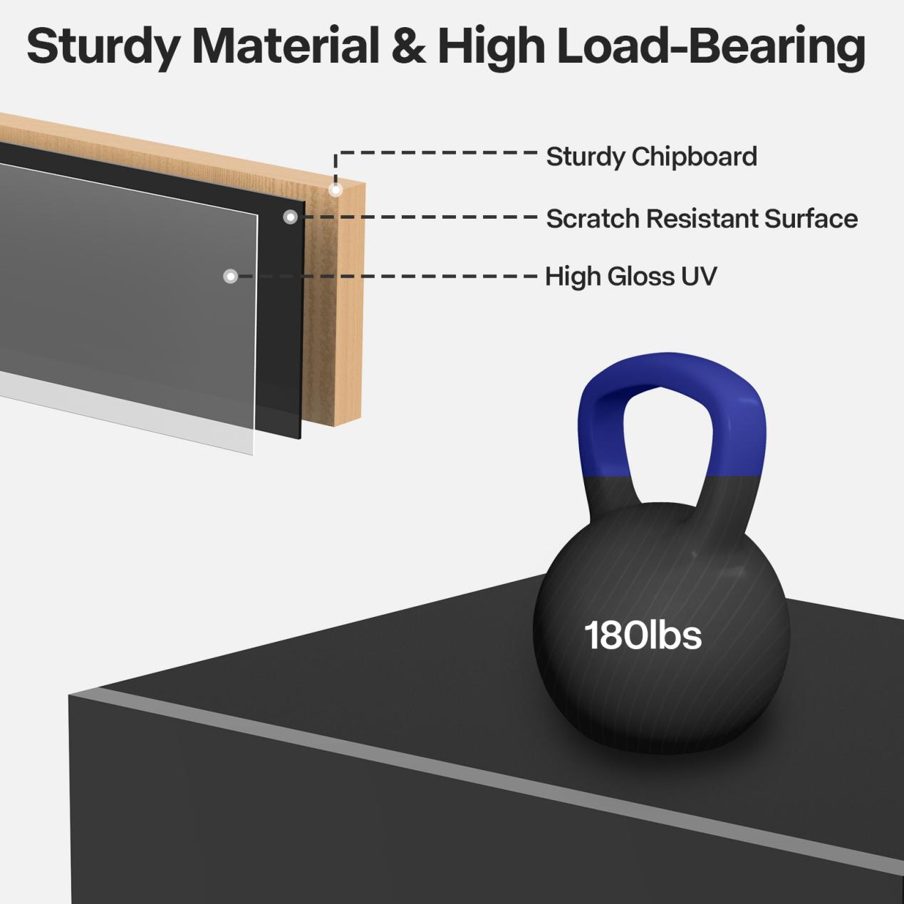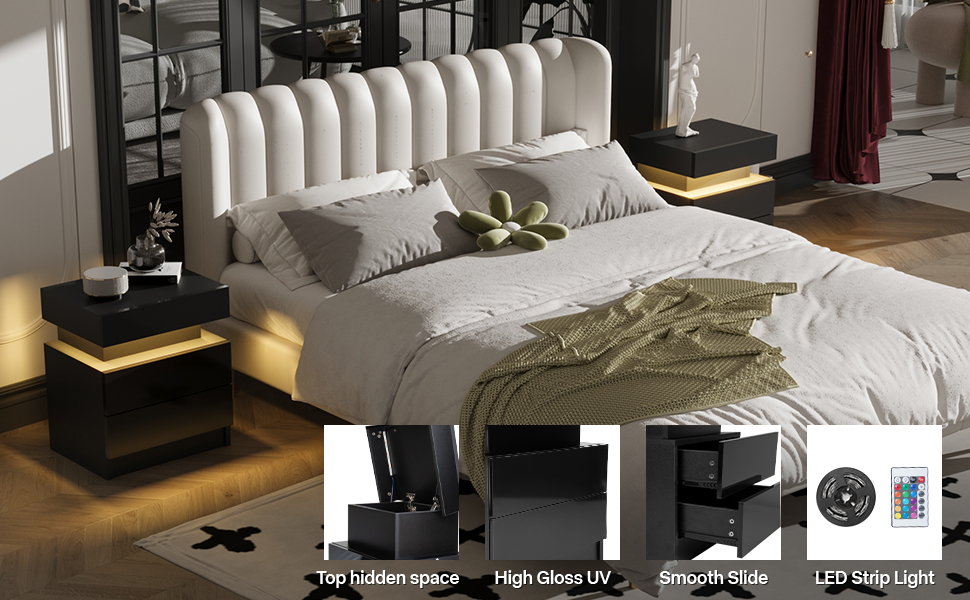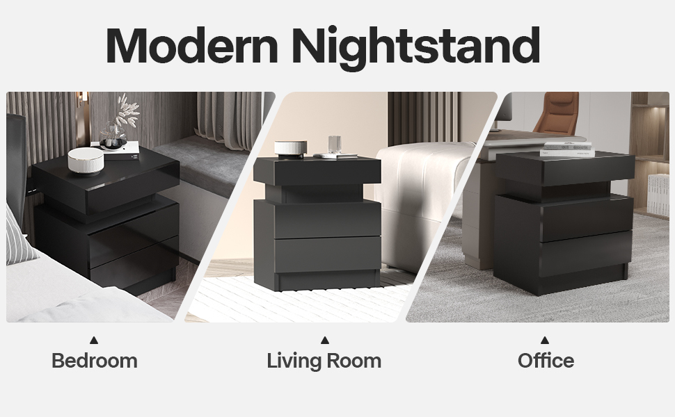 • Mesita de noche resistente: hecha de MDF duradero, con una apariencia muy brillante que garantiza que la mesita de noche no sea fácil de usar, sea resistente y duradera, y tenga una larga vida útil.Gabinete con una superficie de diseño de alto brillo, la mesita de noche no se desgasta ni se raya, lo que permite un uso prolongado.